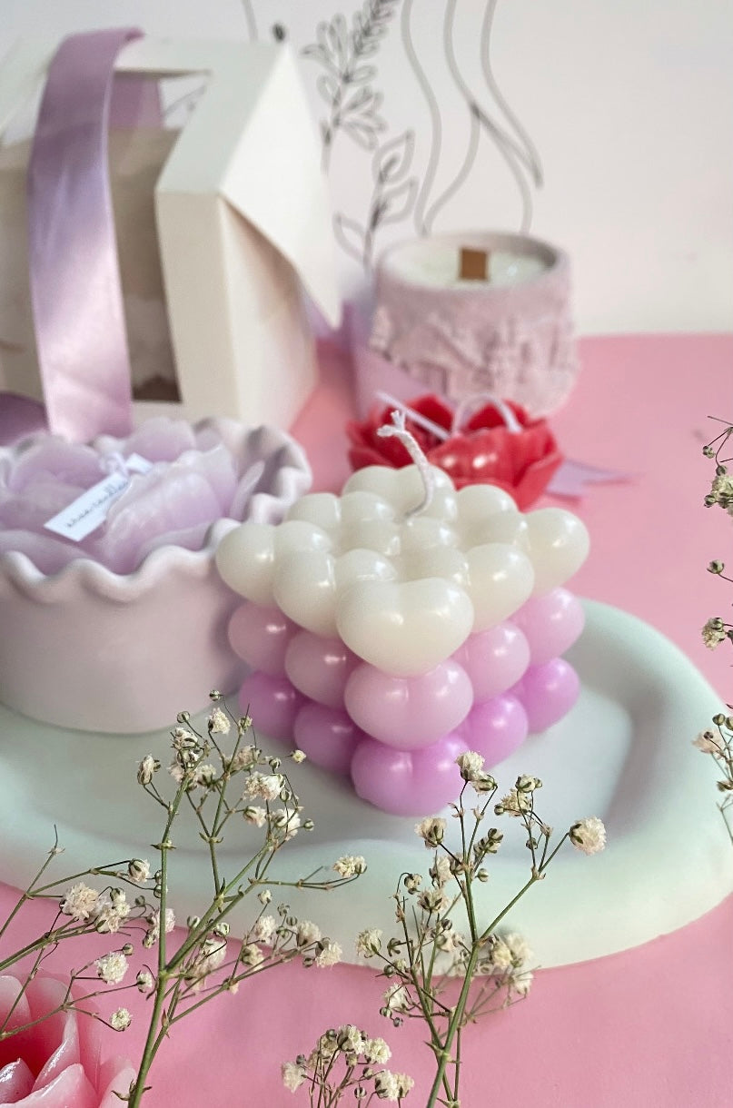 Light up your room with the charming Heart Bubble Candle! This gradient toned candle is perfect for adding a cozy and whimsical touch to your decor. With its quaint and playful design, this candle is sure to brighten up any space. Get ready for some Pinteresty vibes! 💖🎀