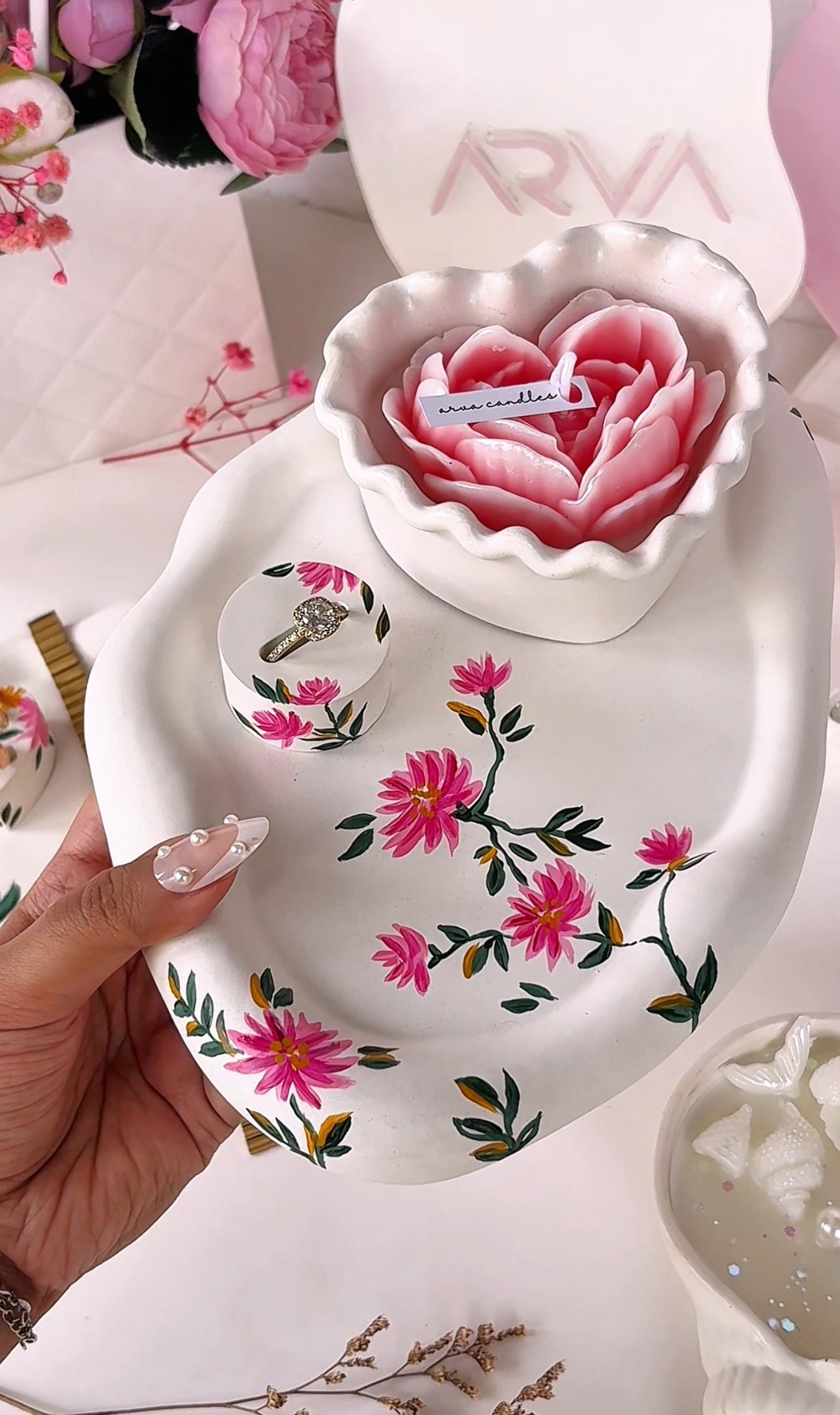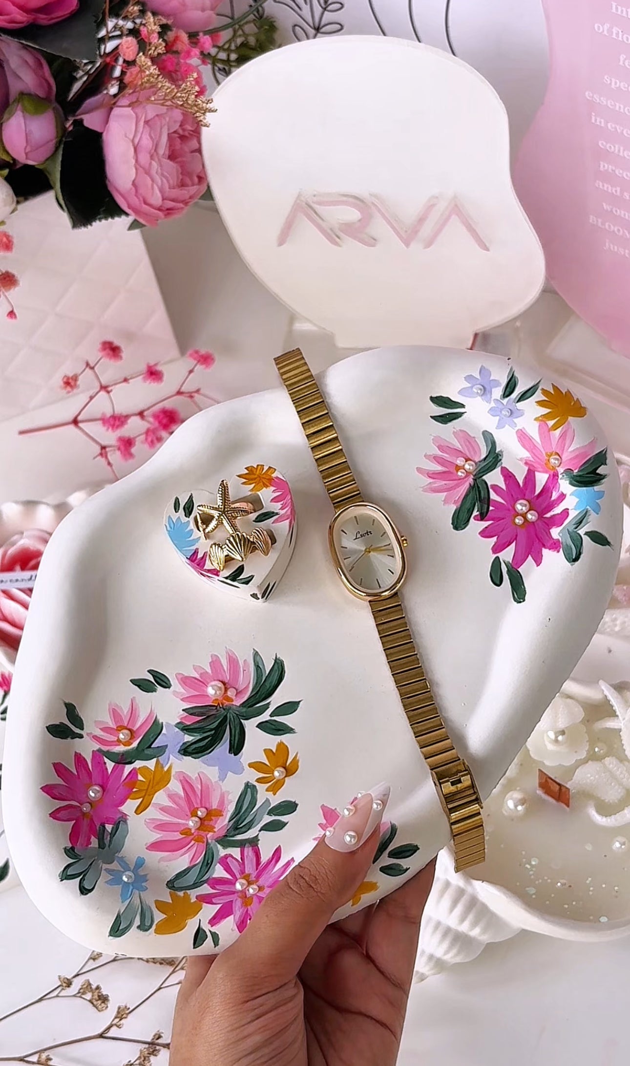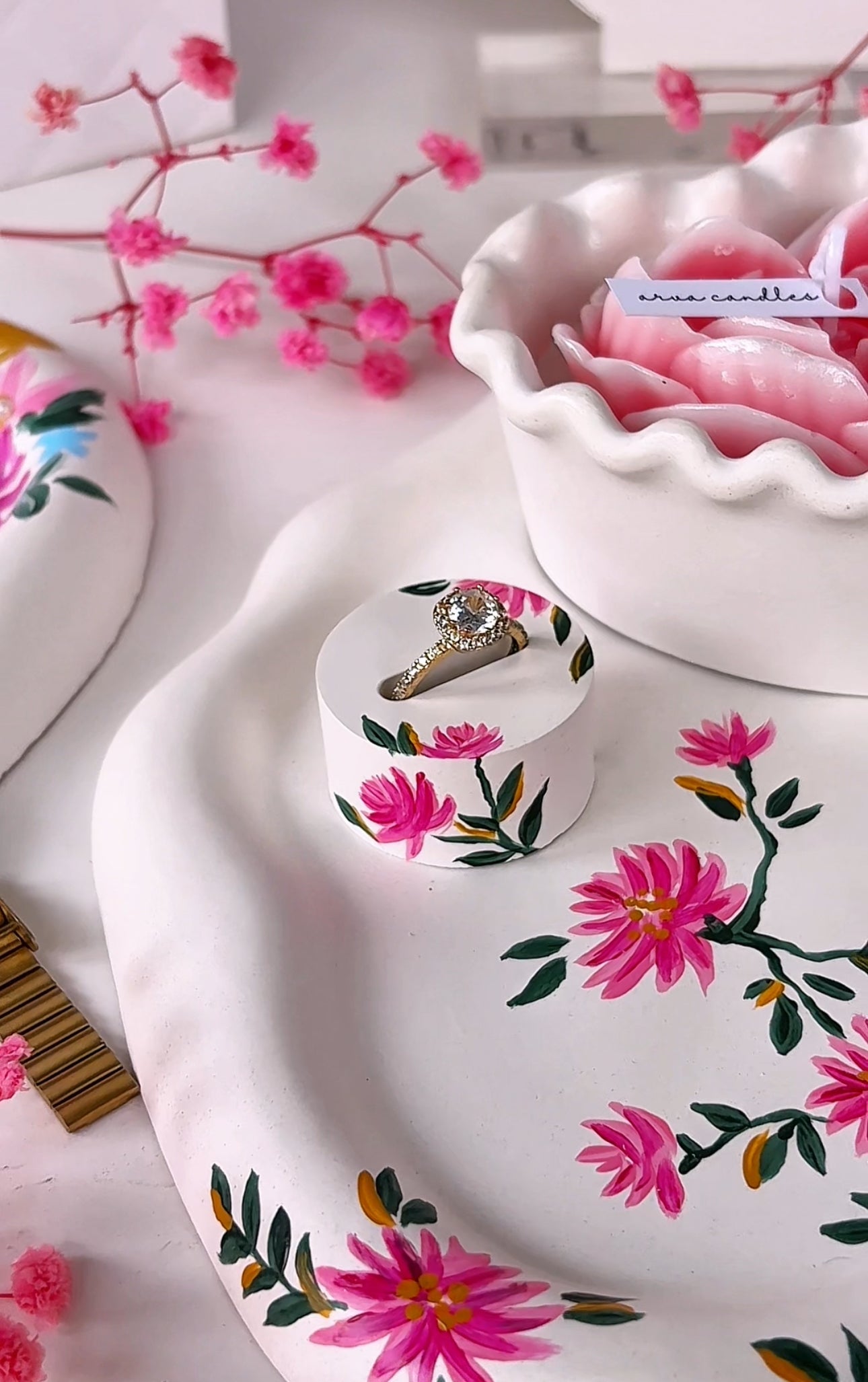 Indulge in elegance and luxury with our Floral Ring Trays. Each tray features delicate hand-painted florals and exquisite pearl accents, making it a stunning addition to any engagement or special occasion. Elevate your jewelry display with these sophisticated trays. ✨