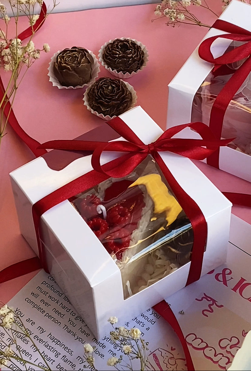 Make your loved one's heart skip a beat with our Mini Love box! This budget-friendly option includes a deliciously glazed berry heart cake candle and scrumptious mini floral chocolate with peanuts. Perfect for a sweet and thoughtful surprise! 💖✨