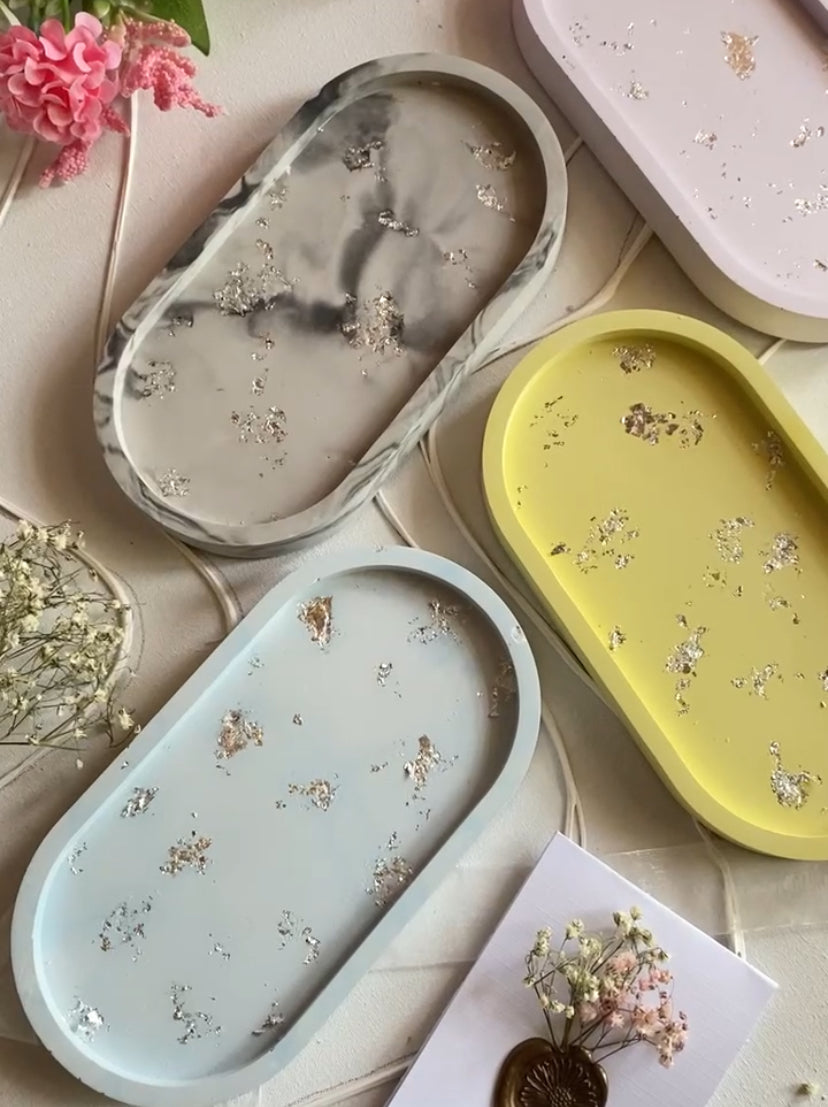 Shine on with these oval trays, speckled with gold or silver flakes. Perfect for holding your favorite jewelry pieces or setting up a cozy candle display. A touch of glam for any room.