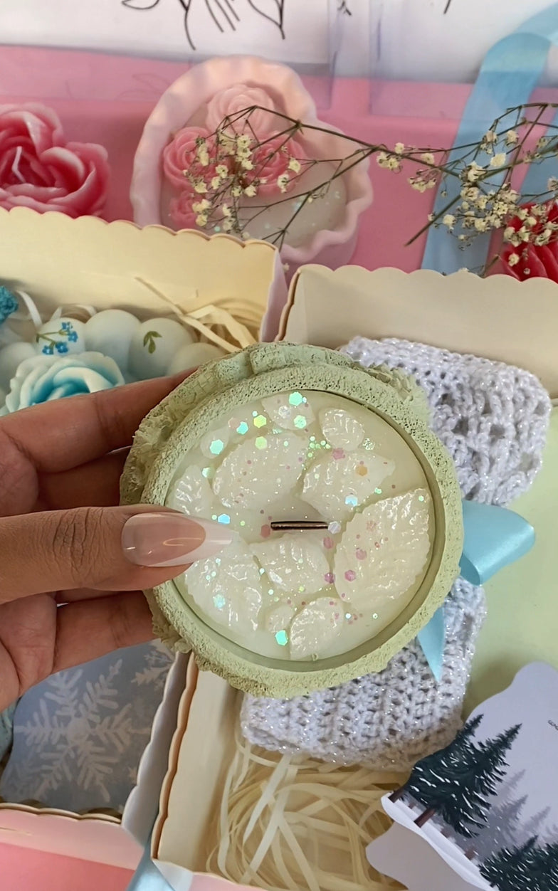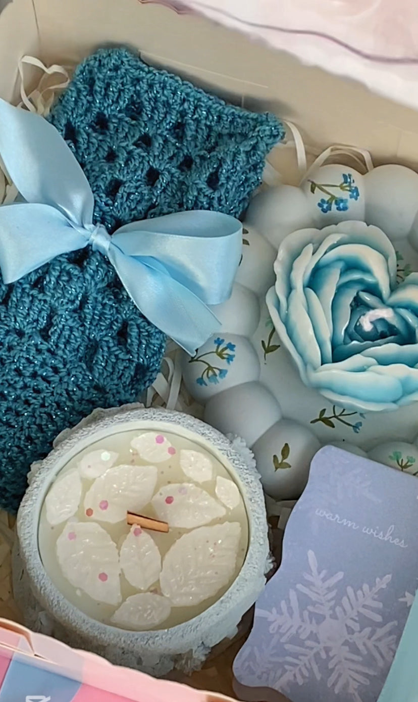 Get ready to spread some winter cheer with our Premium Winter Gift Set! Available in two color themes, this limited edition set includes our signature winter village pot candles, paired with beautiful trays, heart rose candles, and greeting cards. Plus, we've added our cozy hand-knitted gloves for the ultimate gift of warm and fuzzy feelings. Perfect for your loved ones this season! 😍❄️