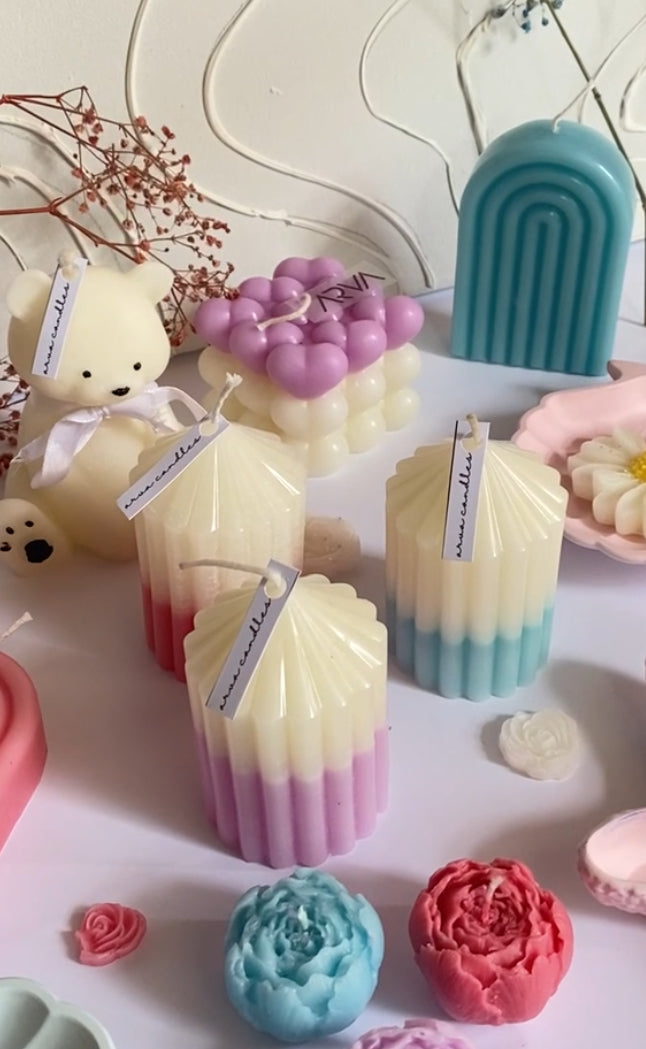 Add some colorful ambiance to your space with our Ribbed Pillars! These ribbed pillar candles come in a variety of pastel shades, perfect for any mood or occasion. Light up and relax in style with our unique and fun candles.