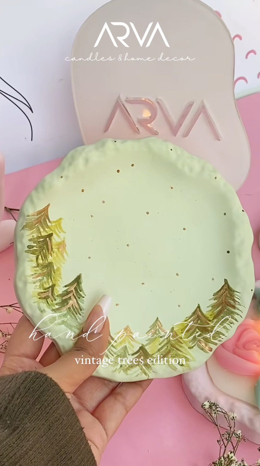 Vintage pot candle & Hand painted tray set